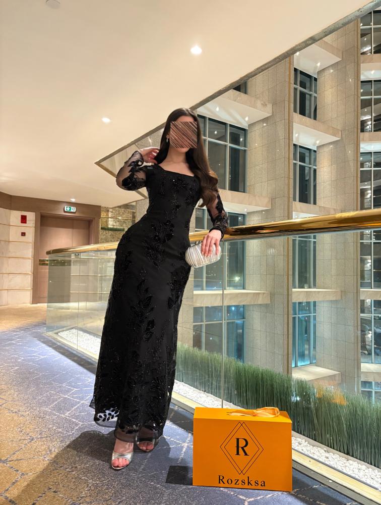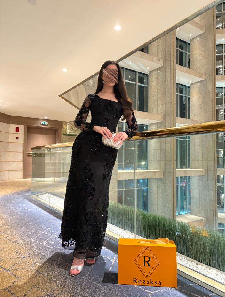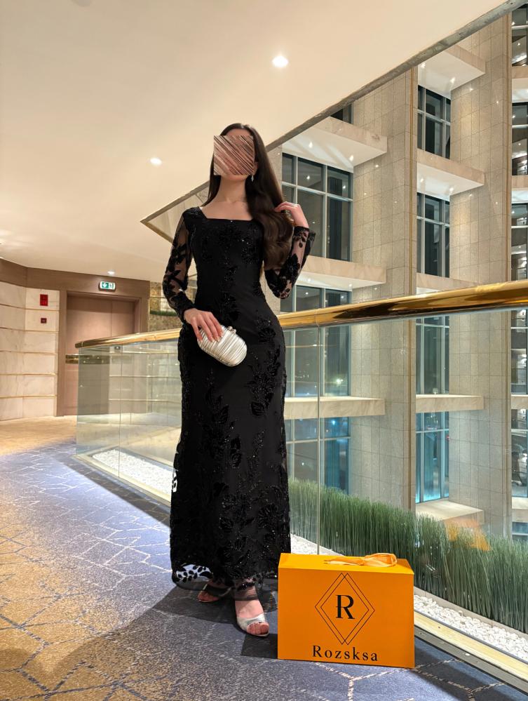 فستان ببطانه و طبقة علويه من قماش التول المطرز بالترتر الاسود اللامع