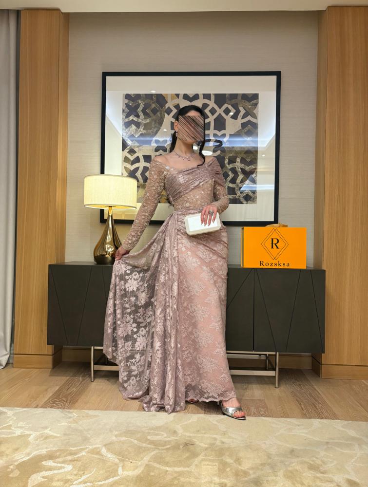 - تنورة انسيابية بطبقات ناعمة تمتد للأرض مع ذيل خفيف يضفي فخامة عند المش