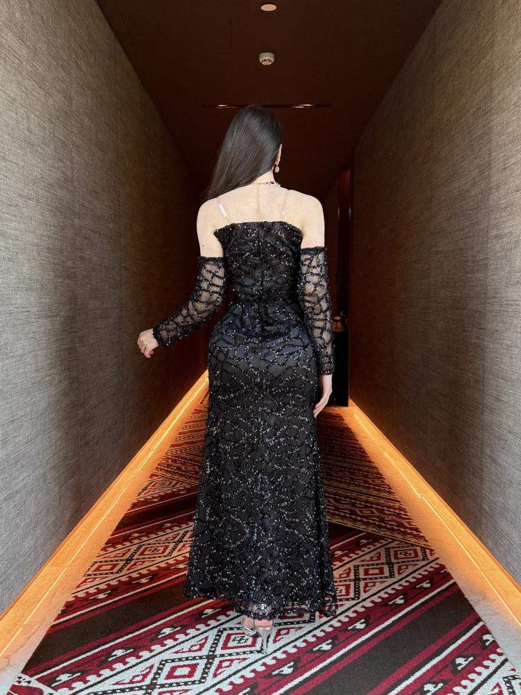 مصنوعة من خامة شيفون كريب فاخر ذات انسيابية عالية وملمس حريري ناعم، تتميز بخفة الوزن وحركة أنثوية أنيقة