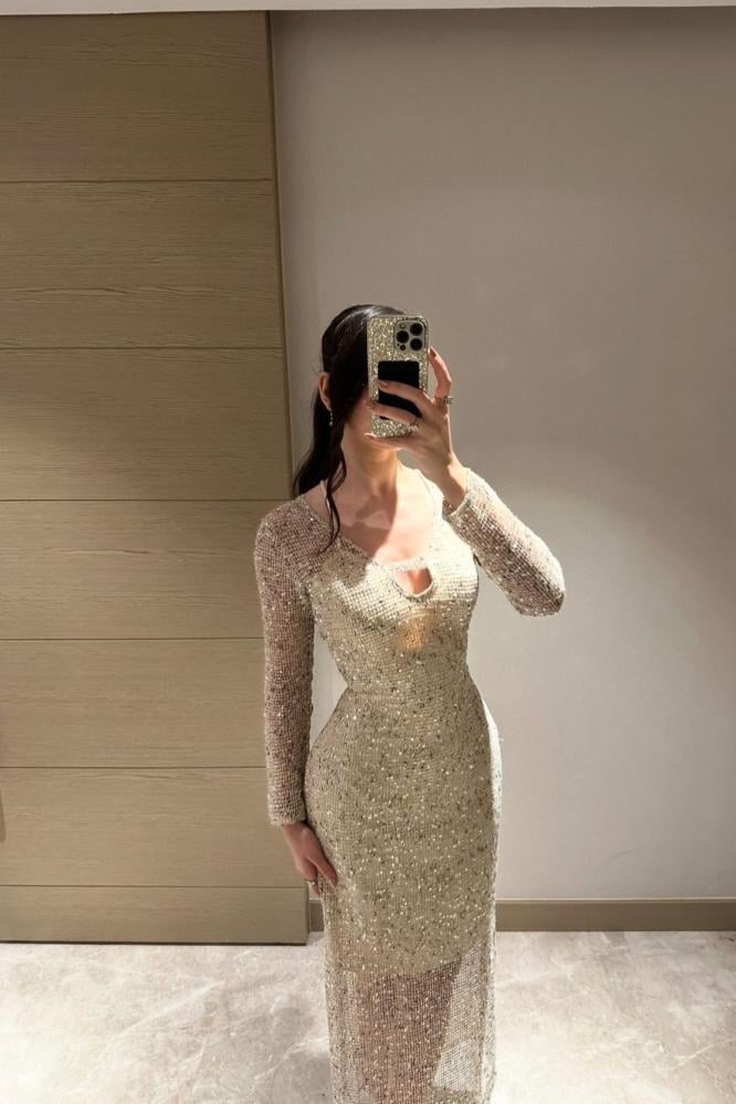 • القصة: ضيقة (Bodycon) تبرز الخصر والأنوثة، مع أكمام طويلة لمظهر راقٍ ومتوازن.