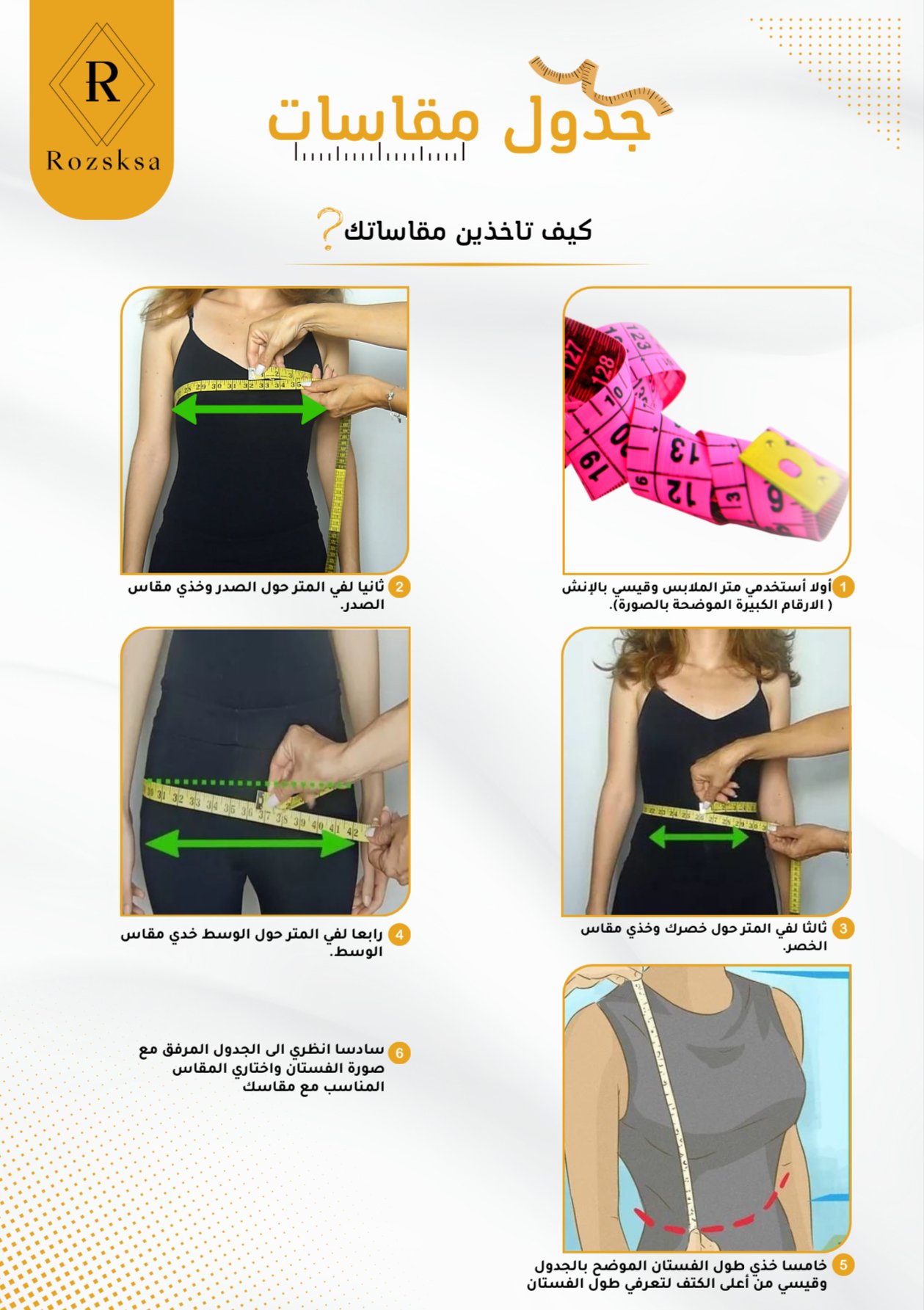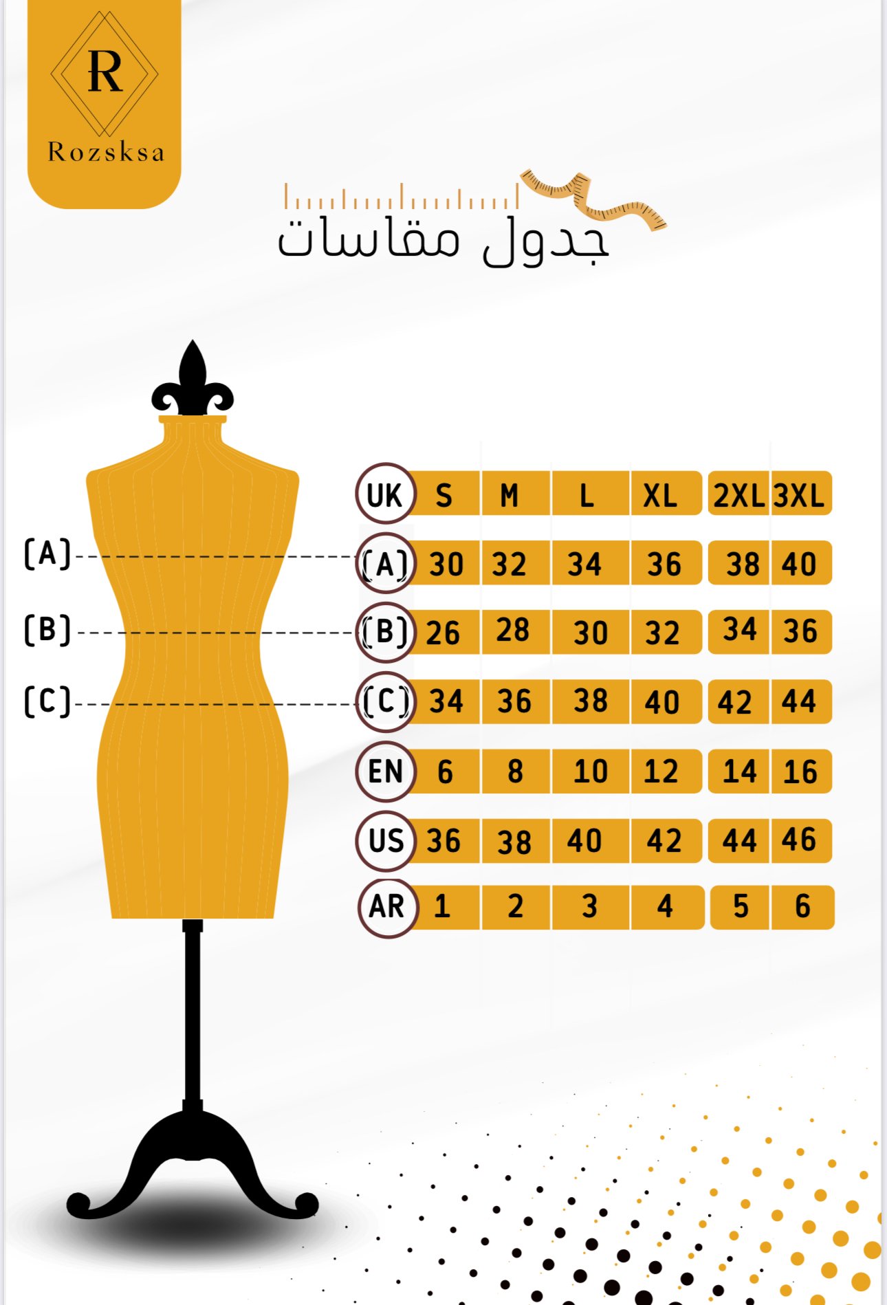 عزيزتي الأنيقة الرجاء التأكد من اختيار المقاس الصحيح . تفاصيل مهمه : المقاسات بالإنش الرقم الكبير بالمتر